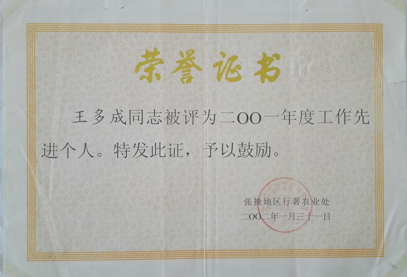2001年度工作先進(jìn)個人